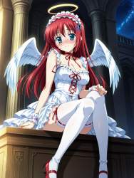 | … | 121無題Name名無し 26/04/27(月)06:51:04No.99695+ 1777240264241.jpg-(10902 B) ((alternate costume)), haramura nodoka (cosplay), saki (manga), nodocchi (clothes), lolita fashion, lolita hairband, halo, angel wings, cleavage, red neck ribbon, white dress, sleeveless, red ribbon, thighhighs, bow legwear, red mary janes, frilled shoulders, white frills, bare shoulders, frilled hand cuffs, |