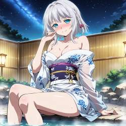 | … | 124無題Name名無し 26/04/27(月)06:55:15No.99698+ 1777240515011.jpg-(14909 B) ((alternate costume)), shiny silk yukata outfit, satin finish, summer kimono, glossy, pure white and see-through white gradient yukata, off-shoulders, floral accents, embroidery obi with gold thread, detailed clothes, |