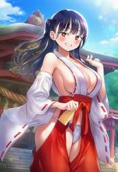 | … | 125無題Name名無し 26/04/27(月)06:55:54No.99699+ 1777240554185.jpg-(9840 B) shrine maiden clothes,blush, revealing clothes, breasts cloth, cleavage breasts, sideboob, underboob, fundoshi, shrine background, |