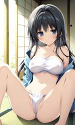 | … | 26無題Name名無し 26/03/09(月)04:22:23No.97765+ 1772997743960.jpg-(7708 B) 1girl, solo,sarashi, navel, sitting, japanese clothes, looking at viewer, blush, closed mouth, knees up, sliding doors, fundoshi, spread legs, off shoulder, underwear, flat chest, covered nipples, indoors, collarbone, bare shoulders, feet out of frame, jacket, arm support, m legs, open clothes, shouji, chest sarashi, tatami, barefoot, on floor, panties, legs, thighs, breasts, bare legs, blue jacket, long sleeves, open jacket, 3:, stomach, white panties, leaning back |