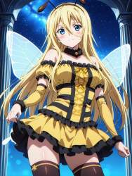 | … | 43無題Name名無し 26/03/09(月)04:43:04No.97784+ 1772998984008.jpg-(13701 B) ((Alternate costume)), bee costume, (bumblebee yellow) and glossy black striped, striped dress, bee antennae, insect wings, fluffy, lolita fashion, lace-up, flare skirt, detached sleeves, off-shoulder, thighhighs, highly detailed dress, |