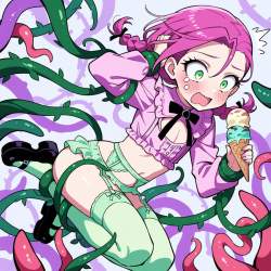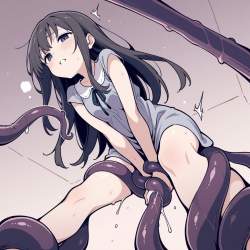 | … | 45無題Name名無し 26/03/09(月)04:45:43No.97786+ 1772999143494.jpg-(13895 B) from below, 1girl, v arms, tentacle grab, legs apart, implied sex, |