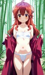 | … | 60無題Name名無し 26/03/10(火)04:16:44No.97813+ 1773083804196.jpg-(9855 B) 1girl, solo, japanese clothes, fundoshi, breasts, navel, sarashi,chest sarashi, looking at viewer, wide sleeves, bare shoulders, cowboy shot, off shoulder, open clothes, parted lips, long sleeves, stomach, collarbone, hands up, kimono, underwear, cleavage, groin, blush, thighs, open kimono, coat,strapless, covered nipples,bamboo forest, |