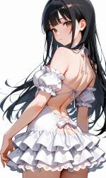 | … | 83無題Name名無し 26/03/10(火)04:38:25No.97836+ 1773085105374.jpg-(9456 B) (Sexy Strapless one-piece dress), (backless outfit:1.4), off-the-shoulder lace frill, mini ruffle skirt, |