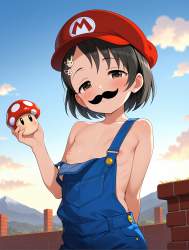 | … | 93無題Name名無し 26/03/10(火)21:38:15No.97856+ 1773146295669.jpg-(8986 B) mario_\(cosplay\), red hat, overalls, nipple slip, fake mustache, holding mushroom, mountain, brick, cloud, sky, |