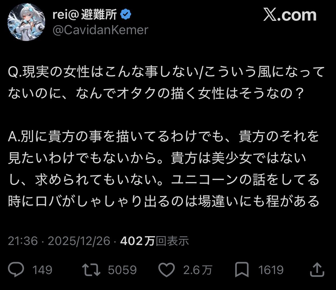 | … | 2026/03/25(水)21:51:28No.76241649+マンガと現実をごっちゃにするなと |