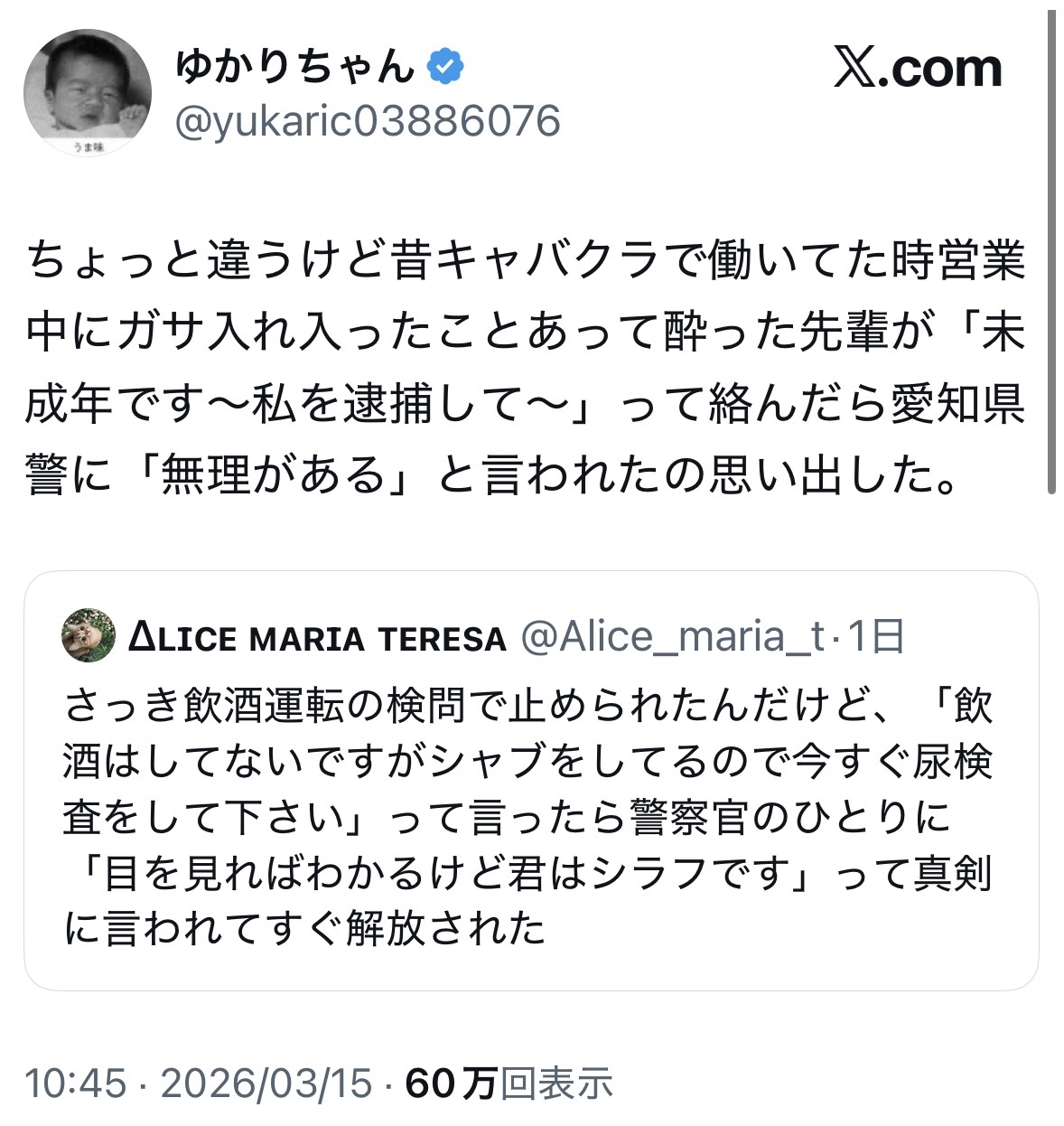 | … | 226/03/16(月)09:33:34No.76233310そうだねx2おまわりさんも暇じゃないからね… |