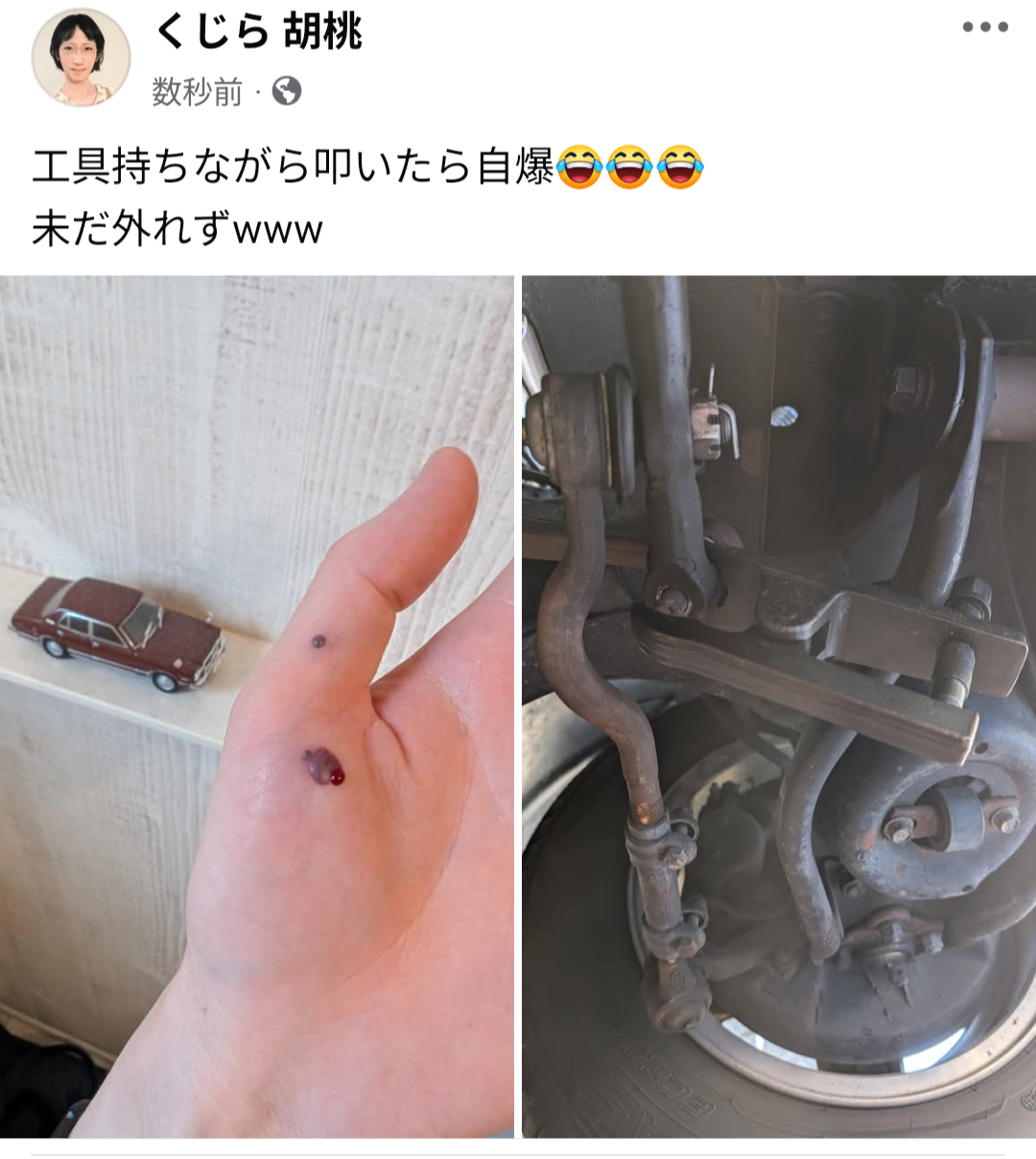 工具持ちながら叩いたら自爆😂😂😂