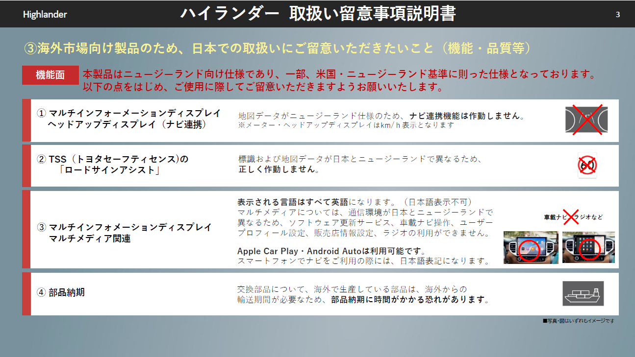 | … | 1026/04/12(日)00:09:16 IP:14.13.*(enabler.ne.jp)No.2328627+ 1775920156270.png-(555749 B) >ハイランダーは右ハンドルで入れてくれるのだが、灯火レバーとワイパーレバーの左右も日本仕様にしてくれているのかな? |
