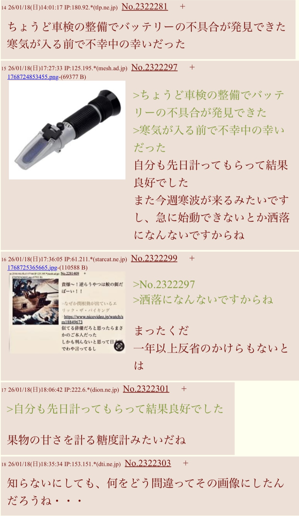 | … | 1026/01/18(日)21:40:02 IP:61.211.*(starcat.ne.jp)No.2322322+>No.2322320 |