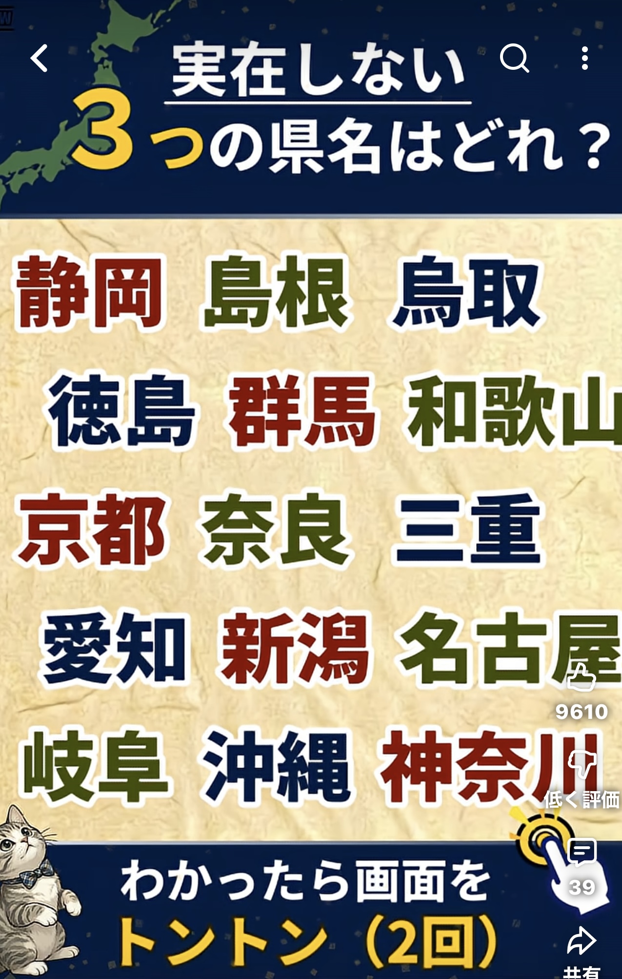 | … | 1126/04/01(水)12:15:26 IP:124.209.*(au-net.ne.jp)No.2327776+鳥取県は取鳥県としたら引っ掛けになるかな |