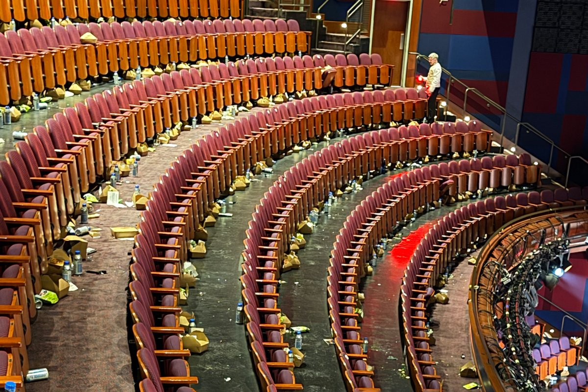 フィフィは、「オスカー授賞式、参加者が去った後の会場…これが日頃、道徳、敬意、環境問題、そして、その他諸々を声高に叫ぶ人たち」と投稿し、1枚の写真を添付。写真は空席となった会場の床の至る所に、ペットボトルや食品が入っていたと見られる紙ボックスやビニール袋が散乱している。