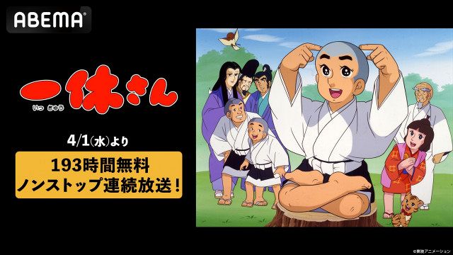 今回の“193時間ノンストップ『一休さん』”企画では、アニメ『一休さん』をABEMAで初無料一挙放送。「一休さん=1・9・3」の語呂合わせにちなんで、4月1日午前0時から4月9日午前1時までの計193時間にわたりノンストップで、アニメ『一休さん』全296話を無料一挙放送する。