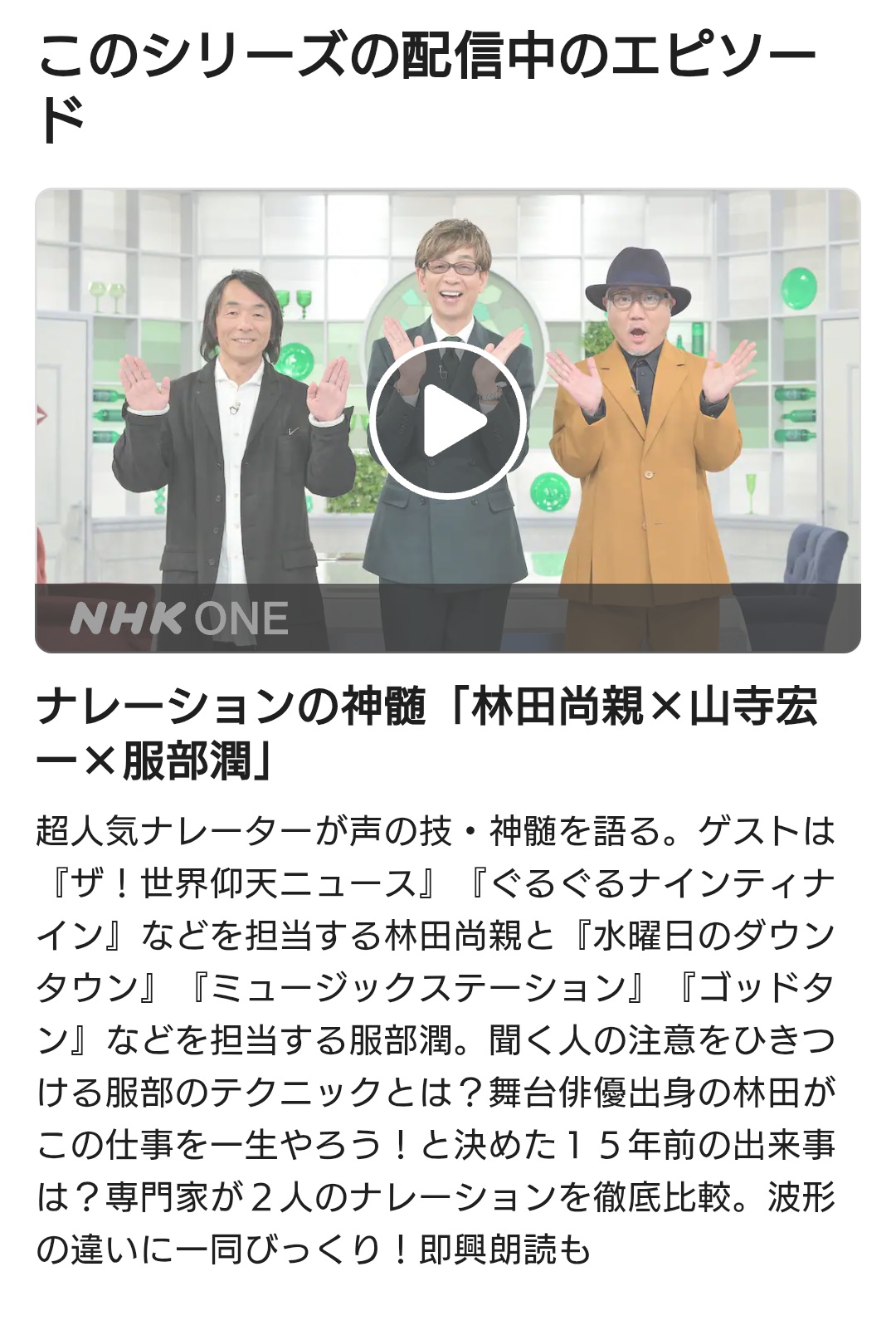 先週の大塚明夫、津田健次郎がこれまで一番かと思っていたが