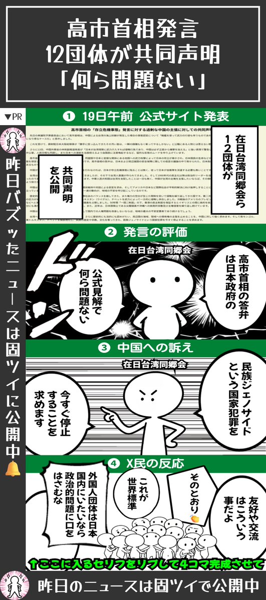 📌高市首相の答弁は「何ら問題ない」在日台湾人団体などが共同声明 中国には「国家犯罪の停止を」レス8件省略。全て読むには返信ボタンを押してください。