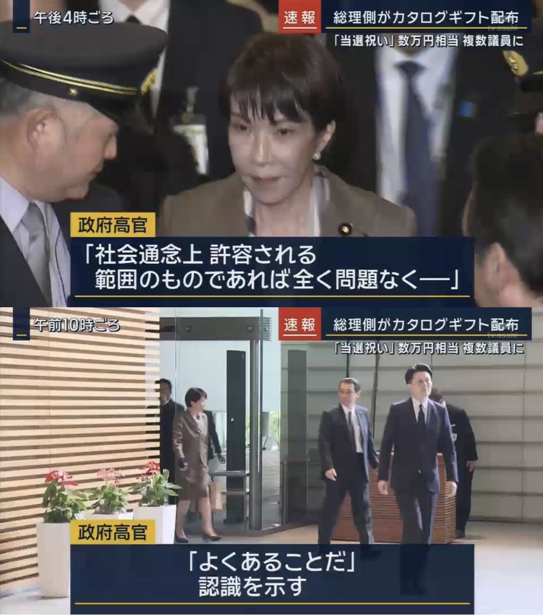 当選議員への贈呈を巡っては、昨年3月に石破茂首相(当時)が当選1回の衆院議員15人と会食した際に10万円分の商品券を配ったことで「国民の感覚からかけ離れたということは率直に認めなければならない」と陳謝した。今回の件について、コメンテーターで出演の国際弁護士・清原博氏は「法律的には合法ですね。高市さんのカタログギフトと石破さんの商品券は似て非なるもので。石破さんの方は私の見解ではグレーなんだけど、高市さんの方は真っ白なんだと思う」と発言。