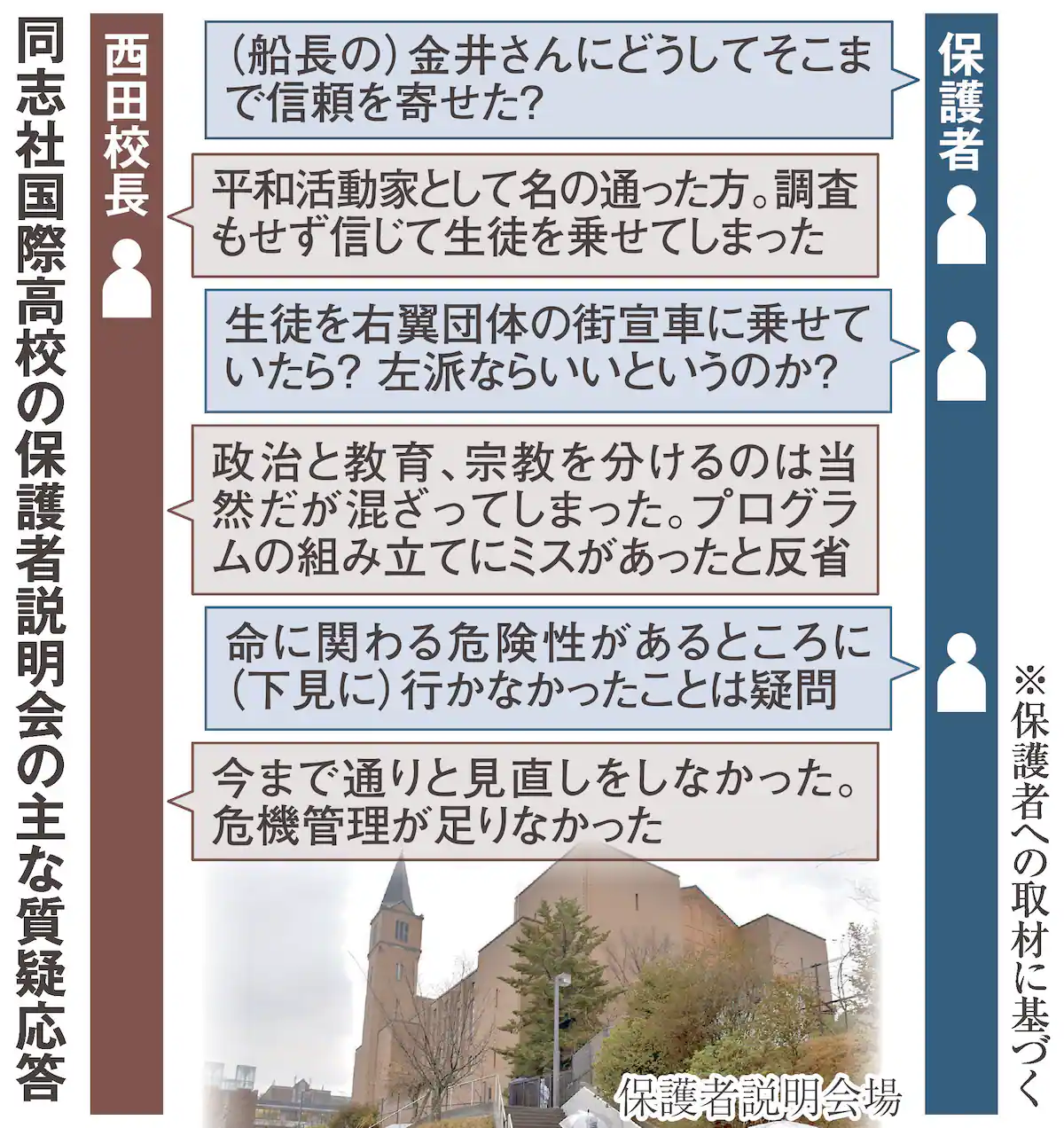 同志社国際の紛糾保護者会「船長」「思想」に質問殺到 「平和愛する部分を信頼」と釈明