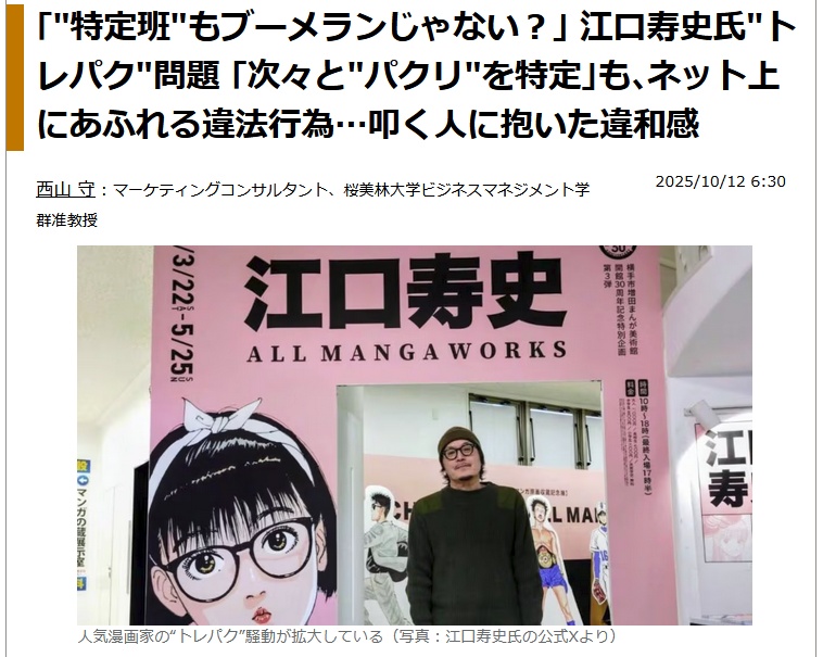… | 25無題Name名無し 25/10/13(月)06:58:41No.3328047+江口寿史氏の“トレパク”問題は「かなり黒に近いグレー」と専門家 |