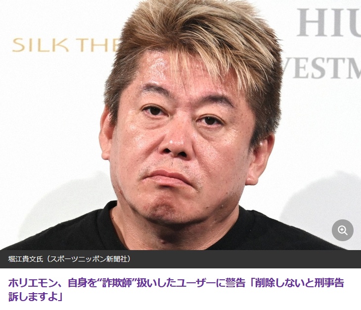 ホリエモン、自身を“詐欺師”扱いしたユーザーに警告レス11件省略。全て読むには返信ボタンを押してください。