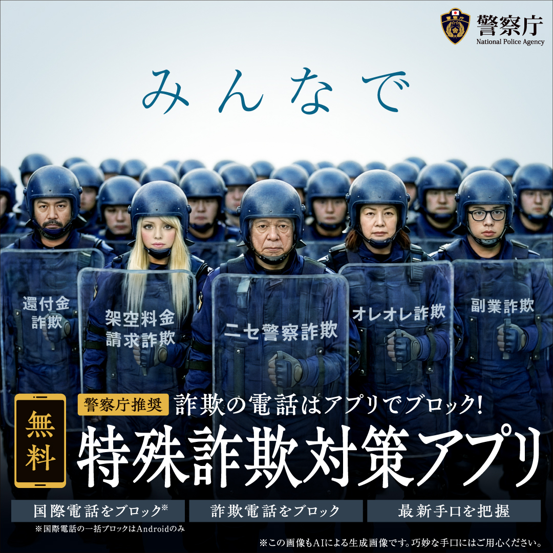『警察庁推奨アプリ』は、詐欺電話を自動でブロックする機能など、特殊詐欺被害防止に有効なアプリです。