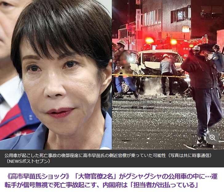 《高市早苗氏ショック》「大物官僚2名」がグシャグシャの公用車の中に…