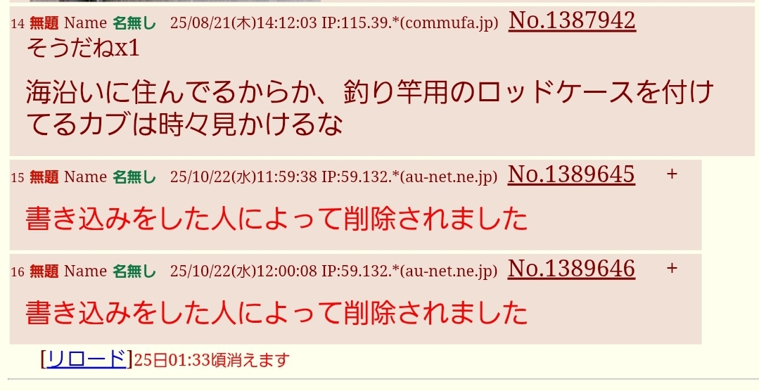 | … | 14無題Name名無し 25/10/22(水)12:01:51 IP:59.132.*(au-net.ne.jp)No.1389648+本文無し |