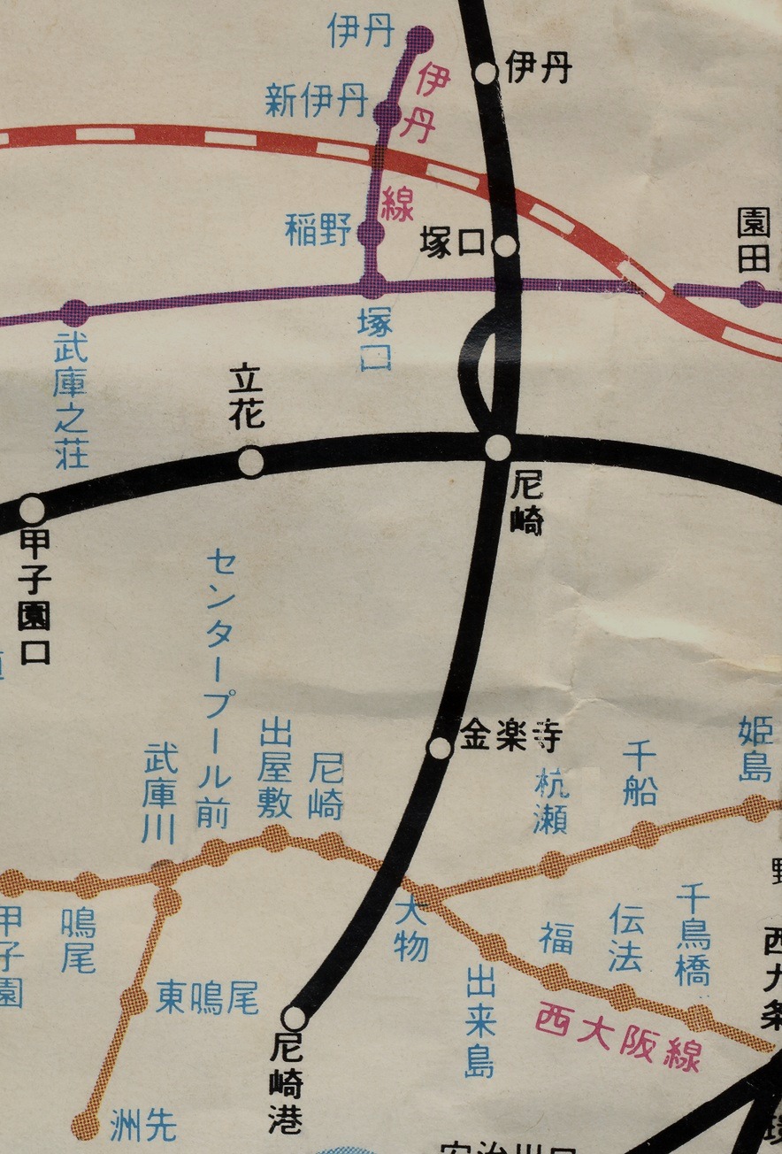 まだ○○時の汽車で大坂に行く、って福知山線が言われていた頃の路線図ですね。尼崎港での機回しは見てみたかったな…。阪神のなんば線も西九条線と呼ばれ文字通り西九条まででしたし、駅名が違う所も…。少しずつですが鉄道も街並みも変化しているのが見て取れますね。ずっと先の話でしょうけど、リニアの赤い線も追加されているのでしょうか?まぁ、その確認は私でなく若い方々にお任せするしかないですが(笑)
