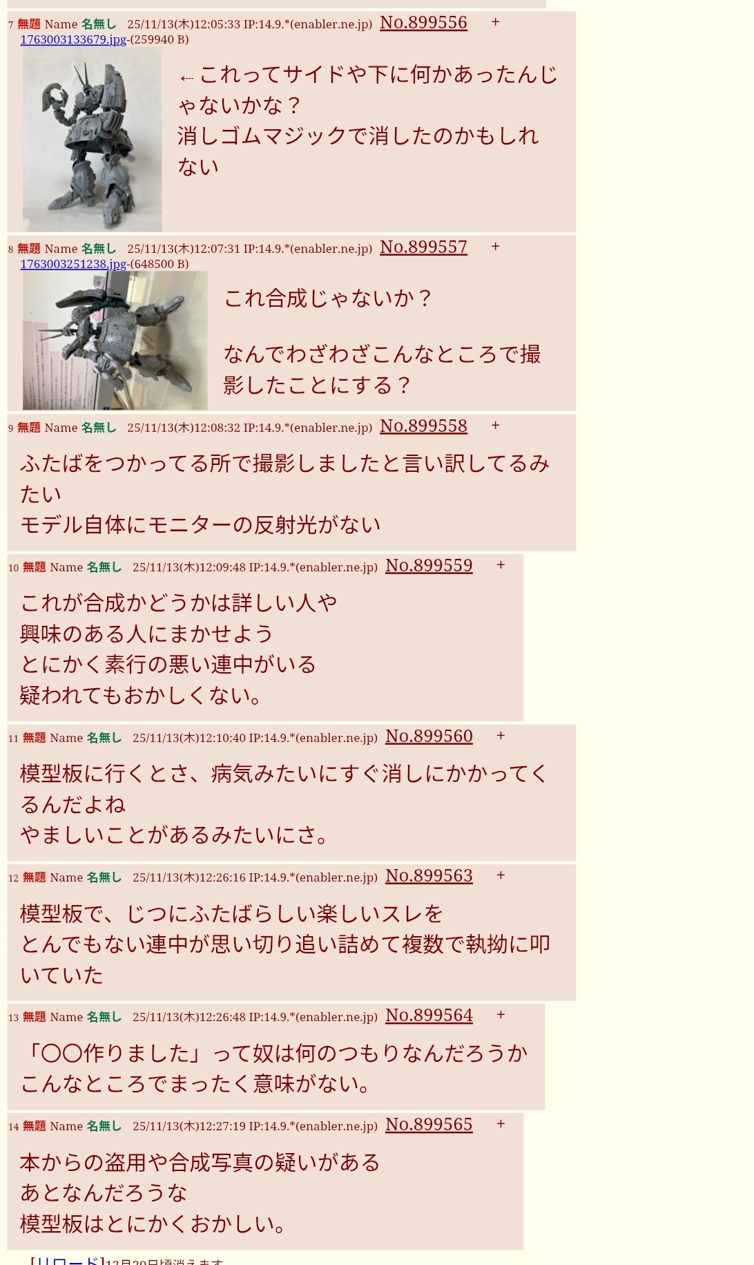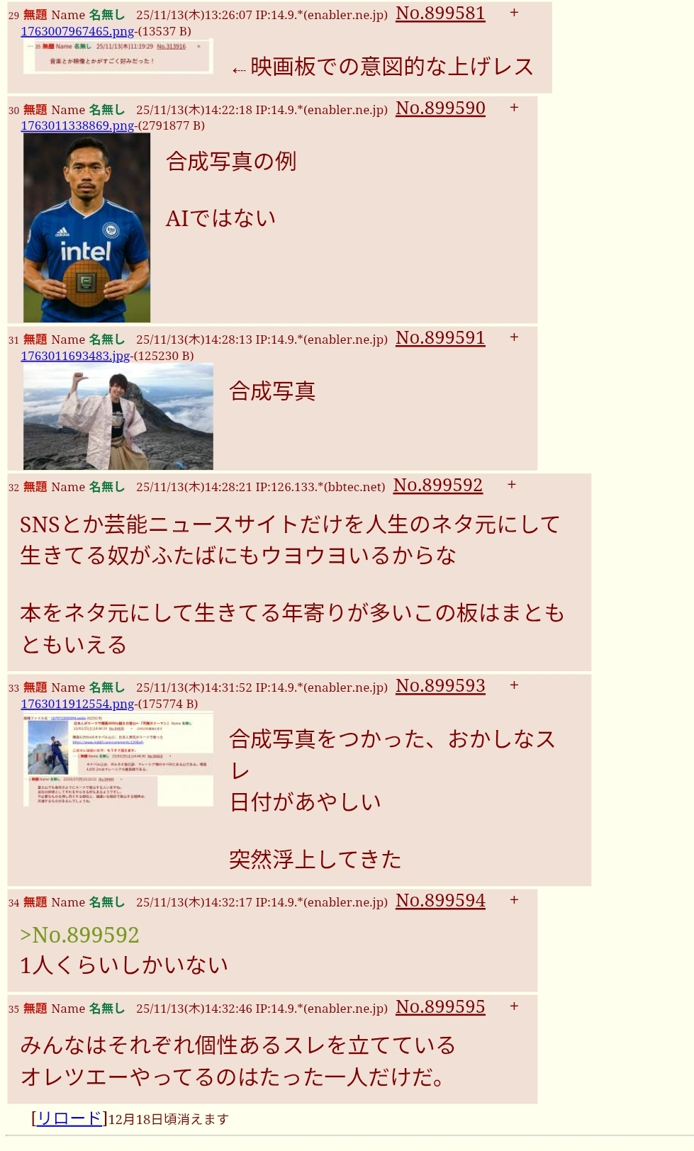 | … | 30無題Name名無し 25/11/14(金)08:13:07 IP:133.106.*(ipv4)No.899662+ 1763075587327.jpg-(701507 B) 本文無し |