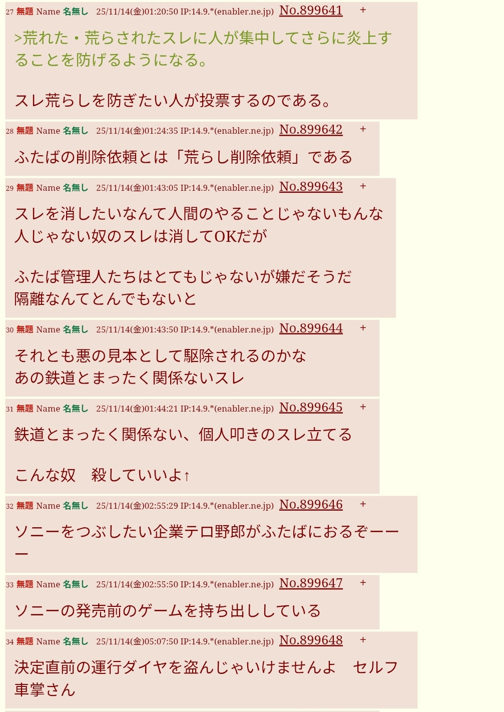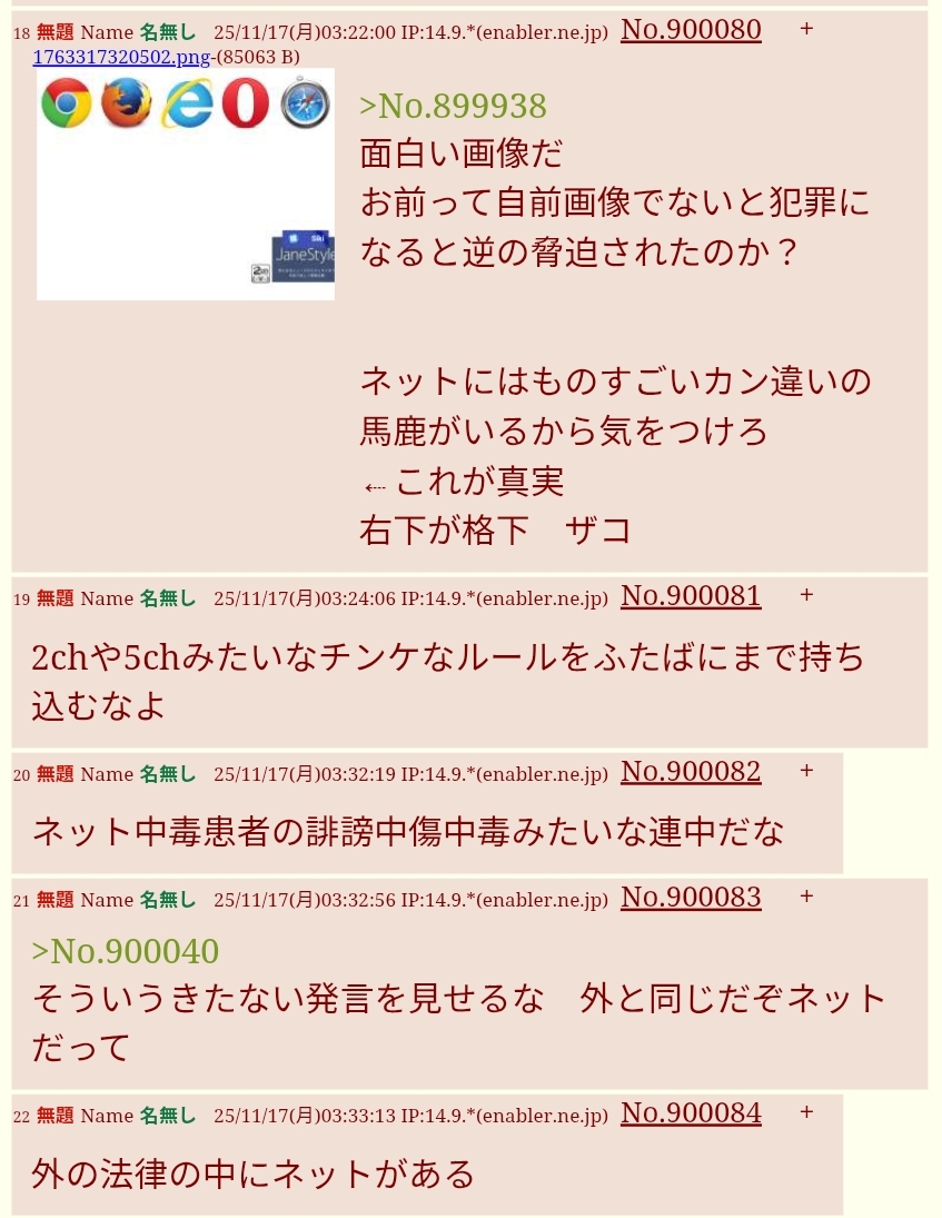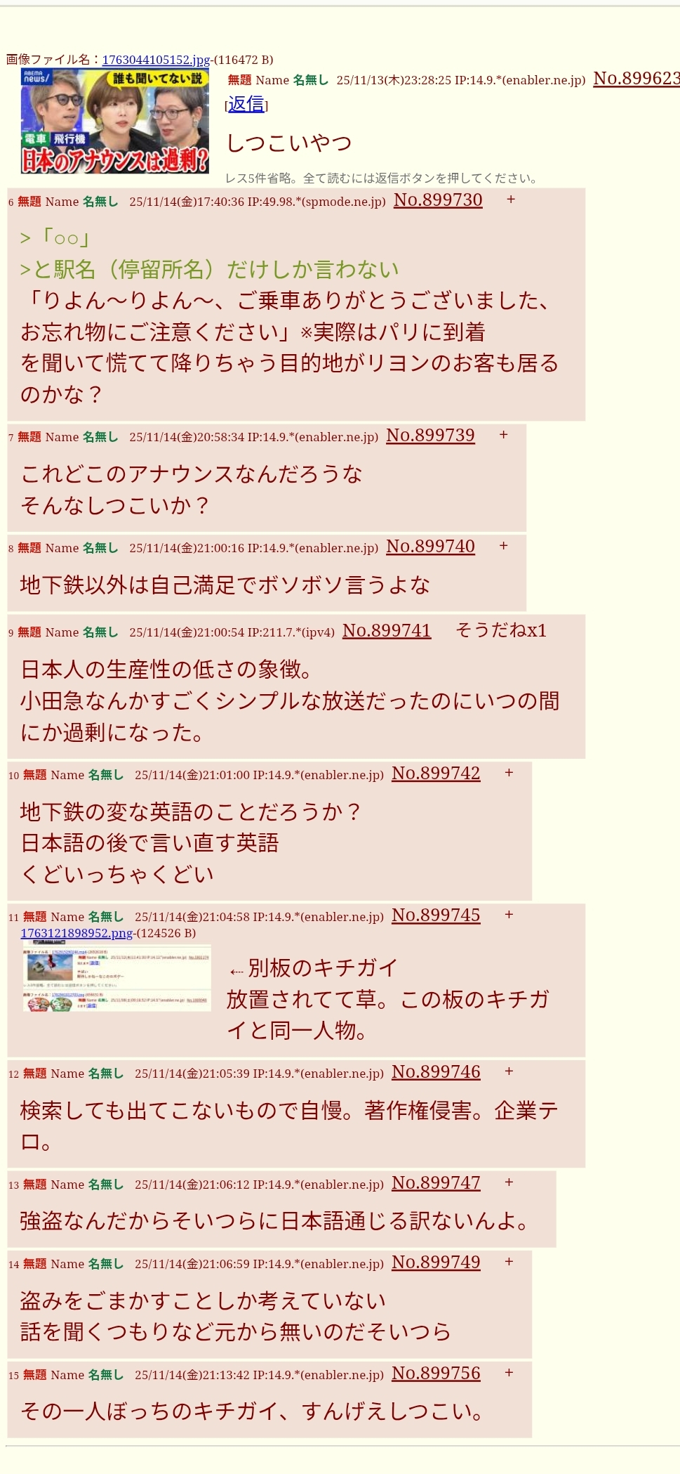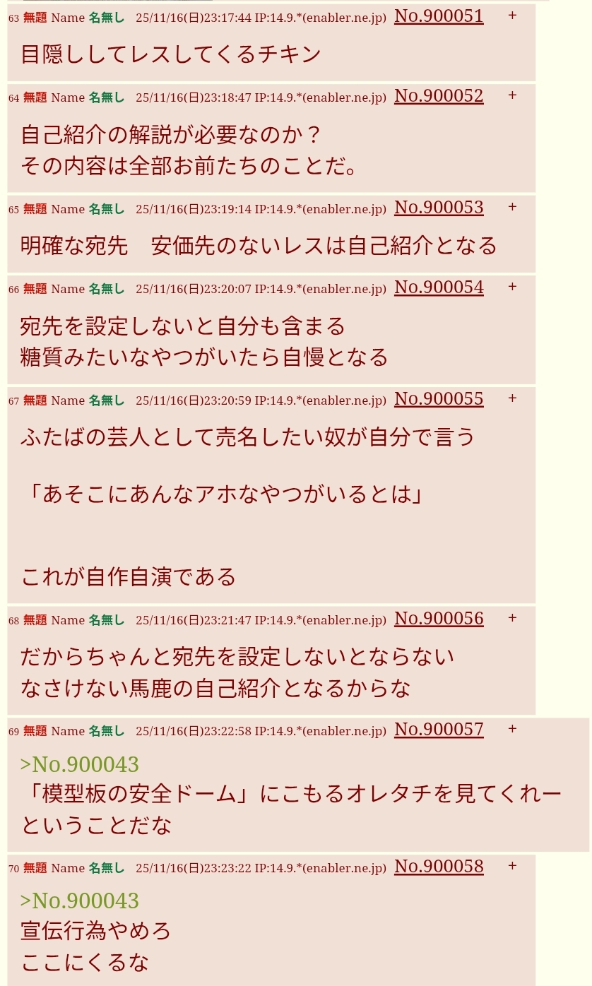 | … | 15無題Name名無し 25/11/13(木)09:22:33 IP:106.146.*(au-net.ne.jp)No.899514そうだねx12面倒だからipごとNGにした |
