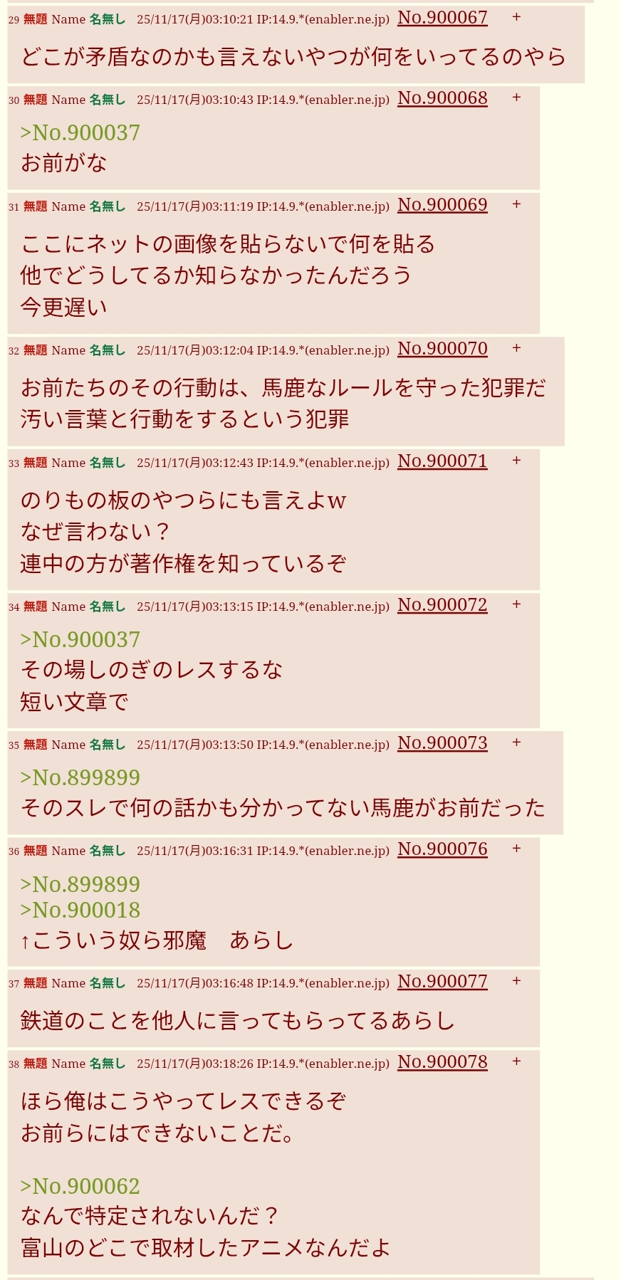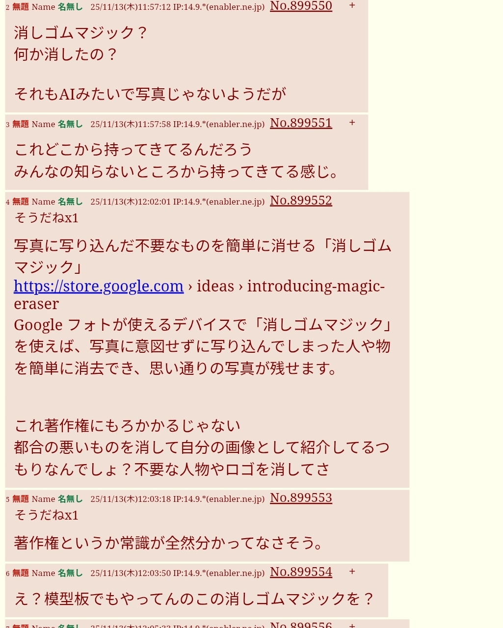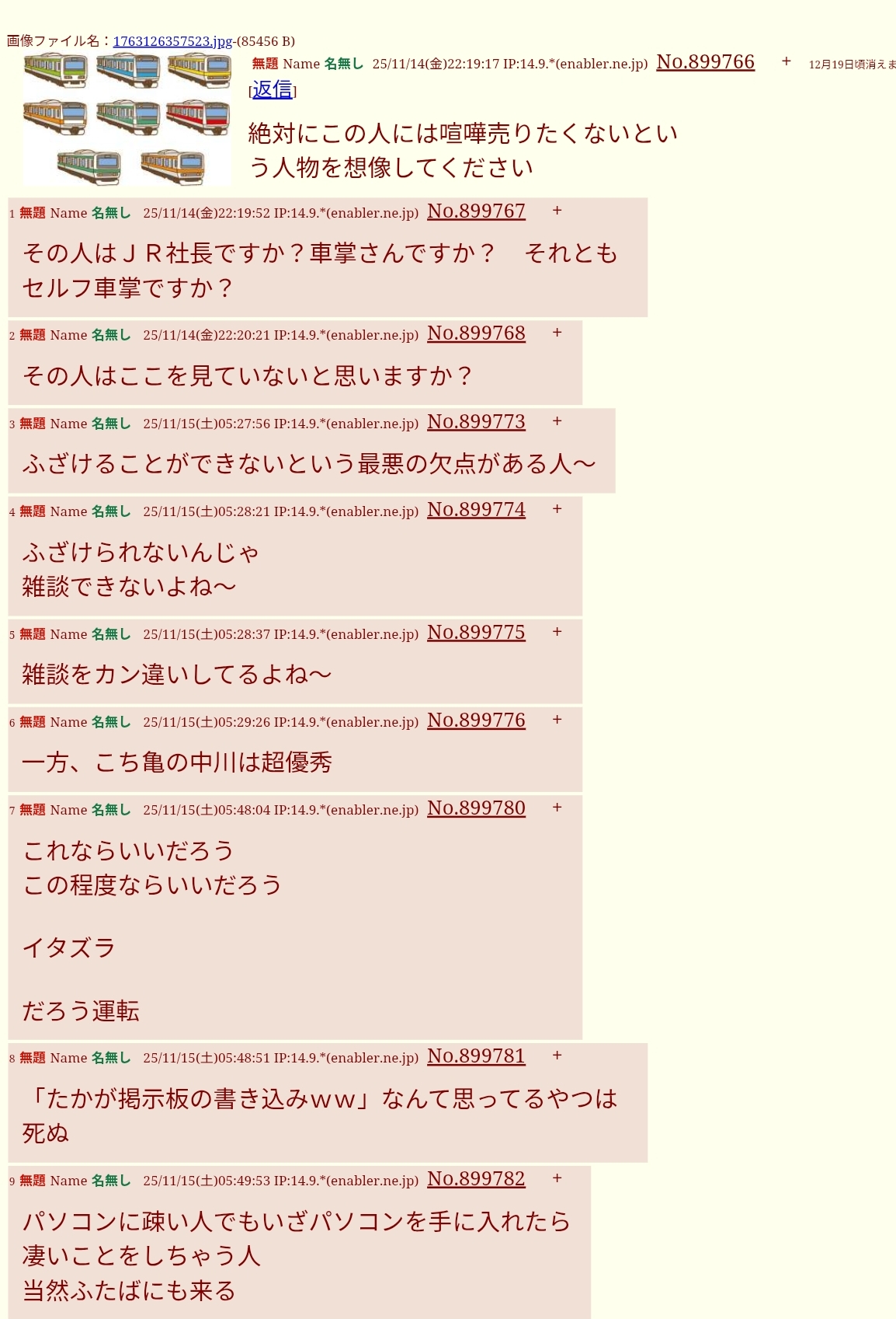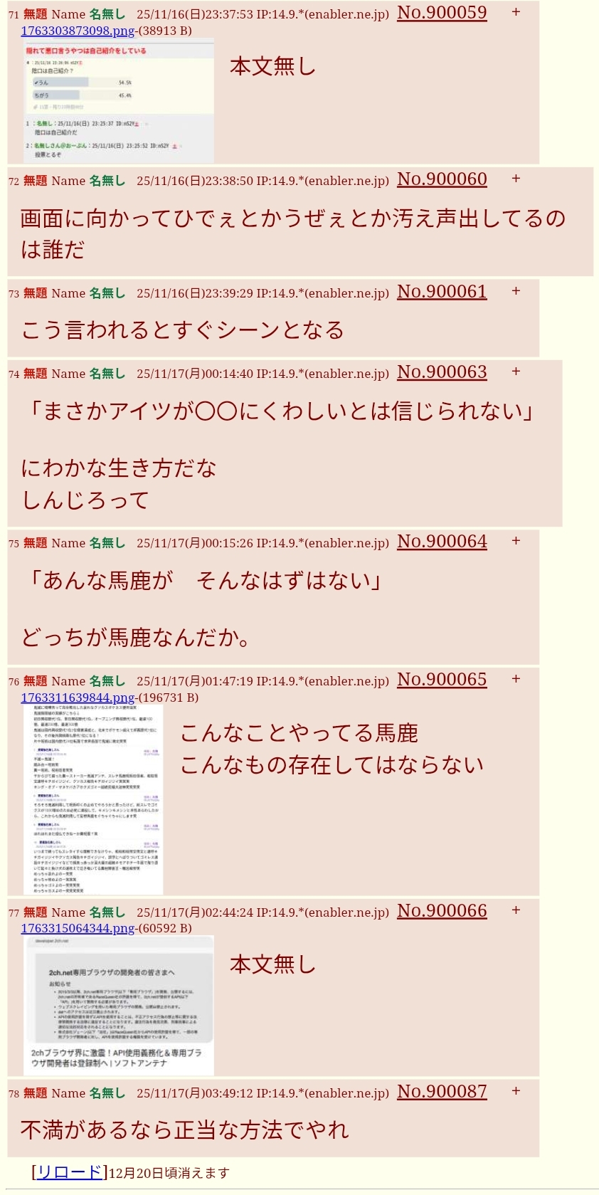 | … | 15無題Name名無し 25/11/13(木)09:22:33 IP:106.146.*(au-net.ne.jp)No.899514そうだねx12面倒だからipごとNGにした |