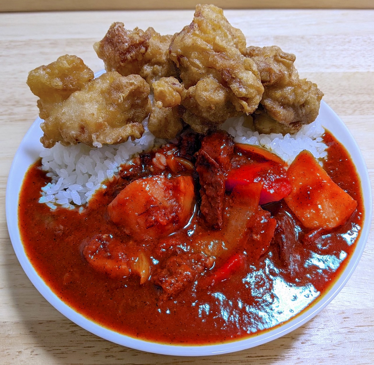 カレー味が非常に良いのだが、セットで白飯が欲しくなるのが難点。