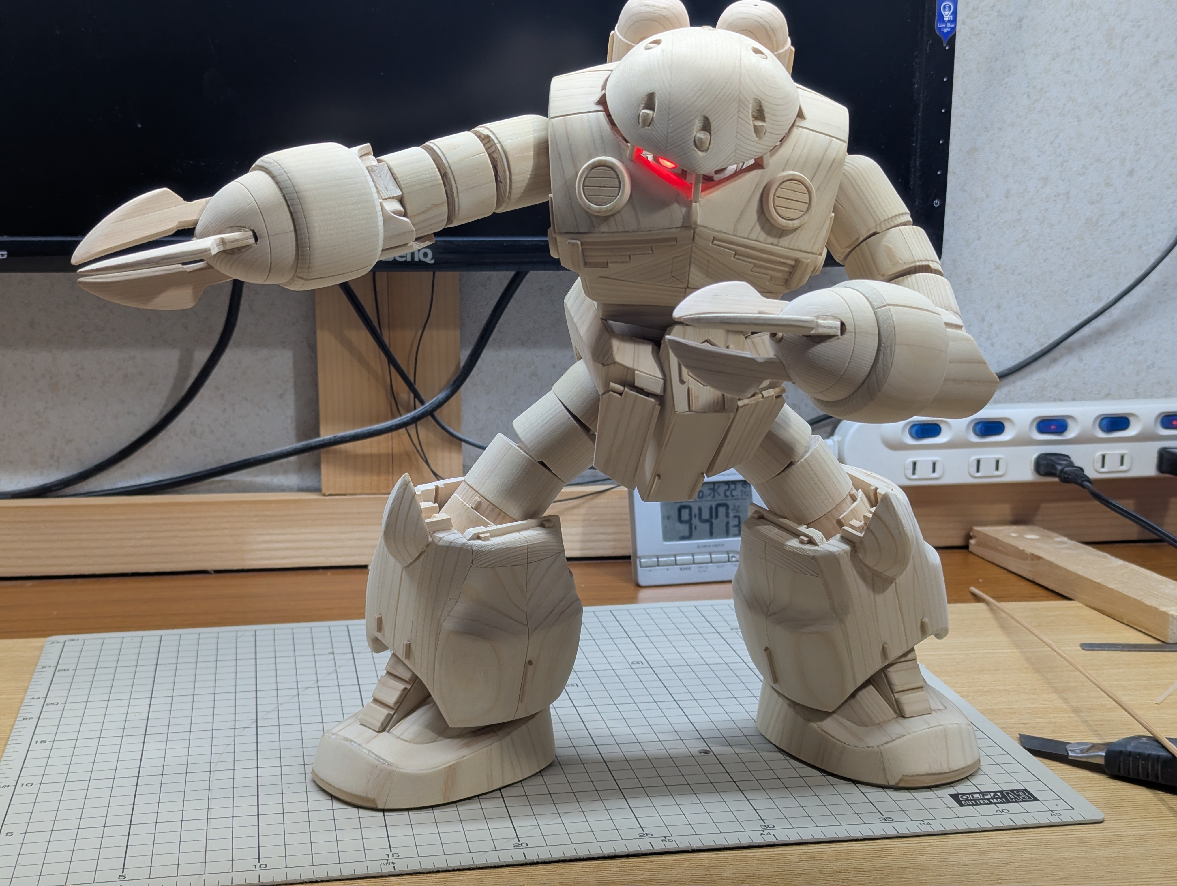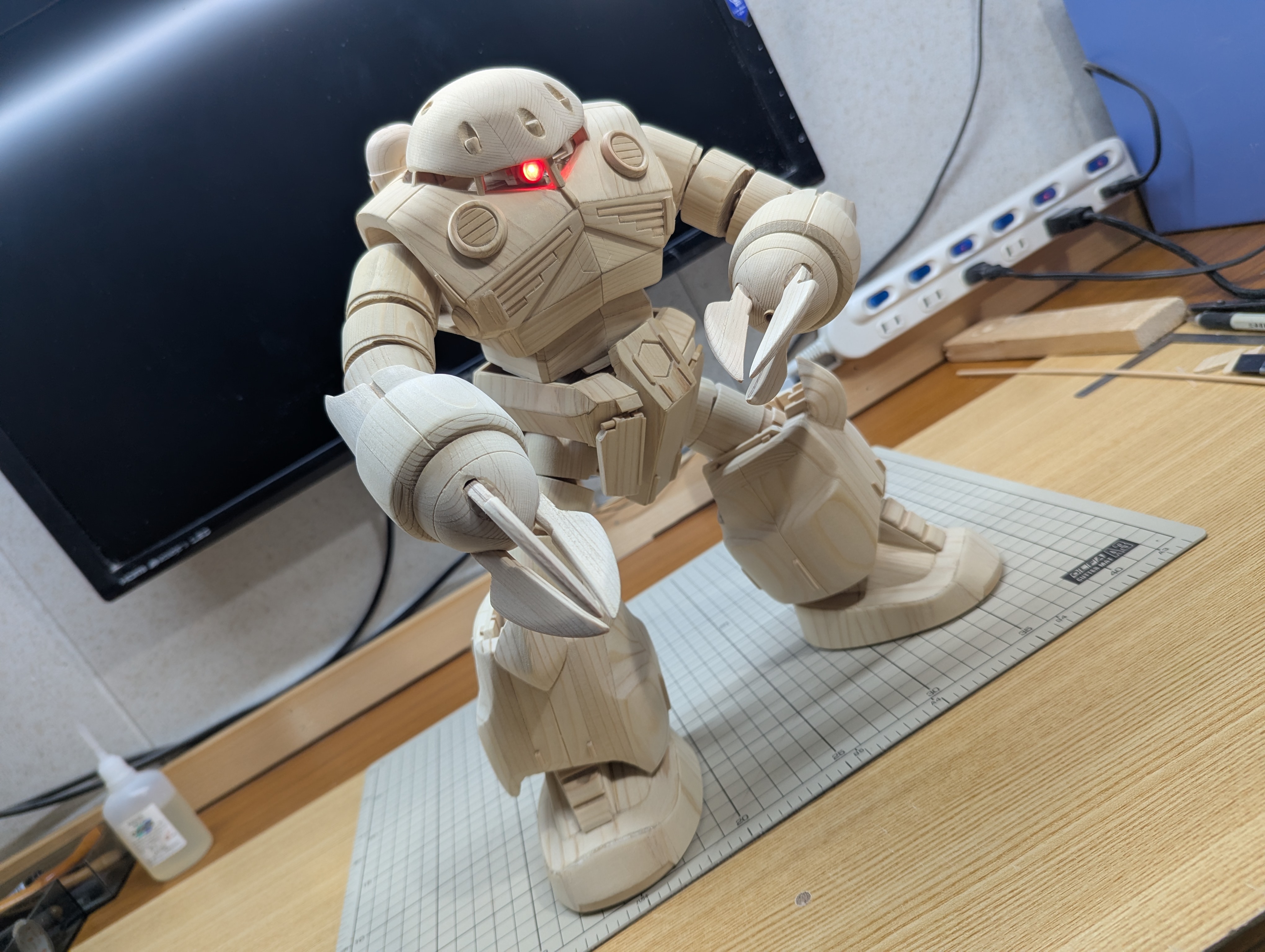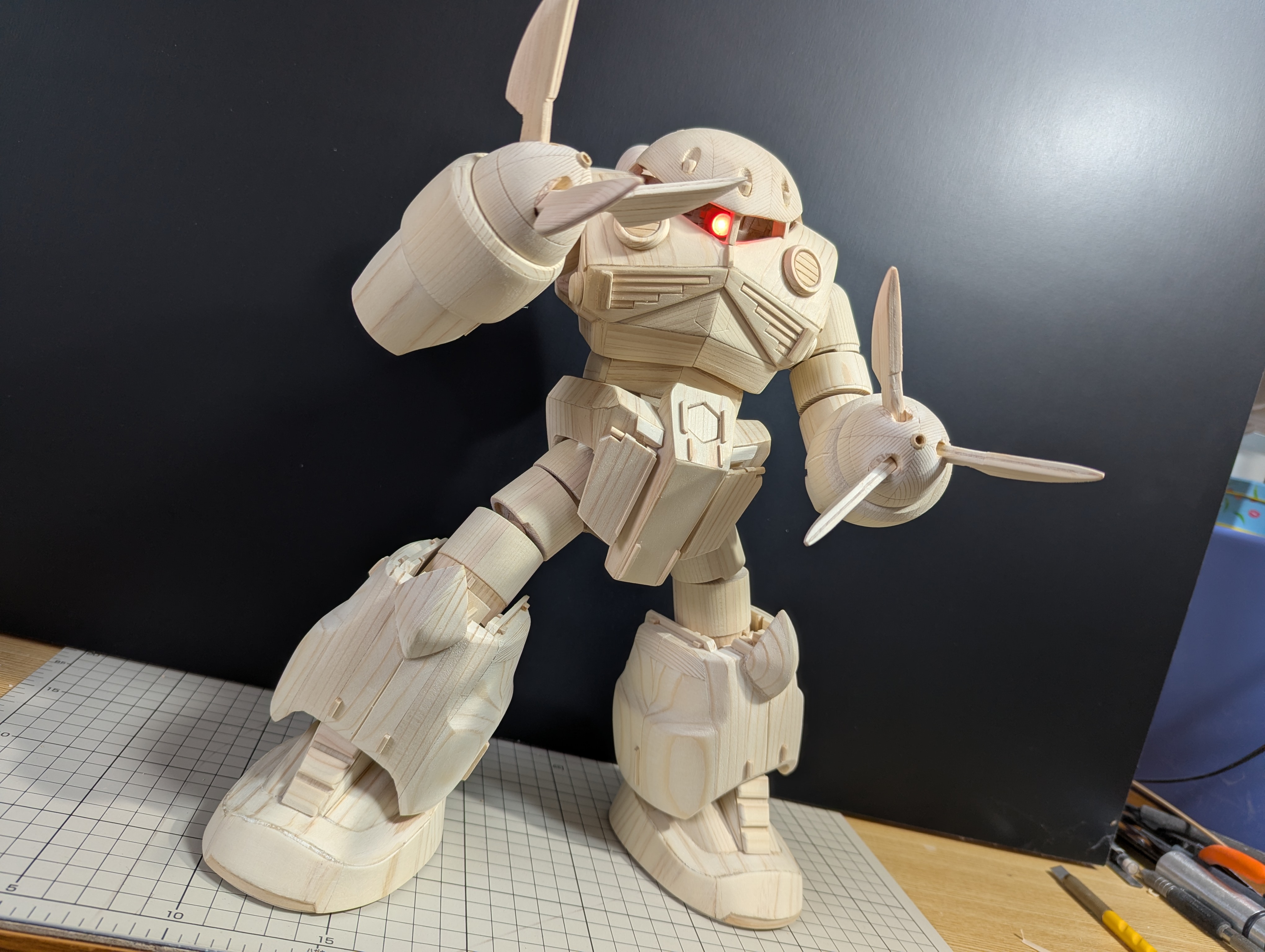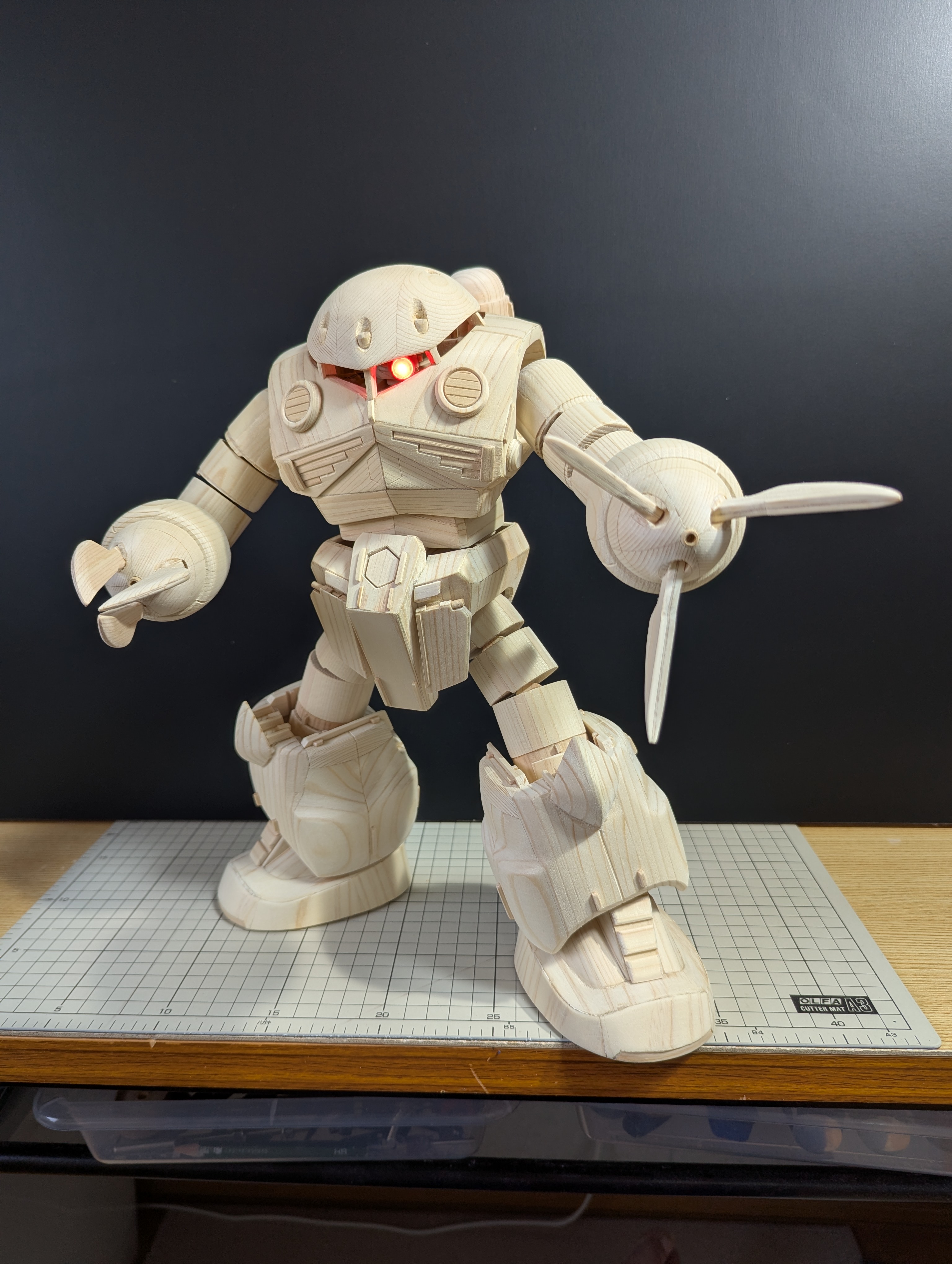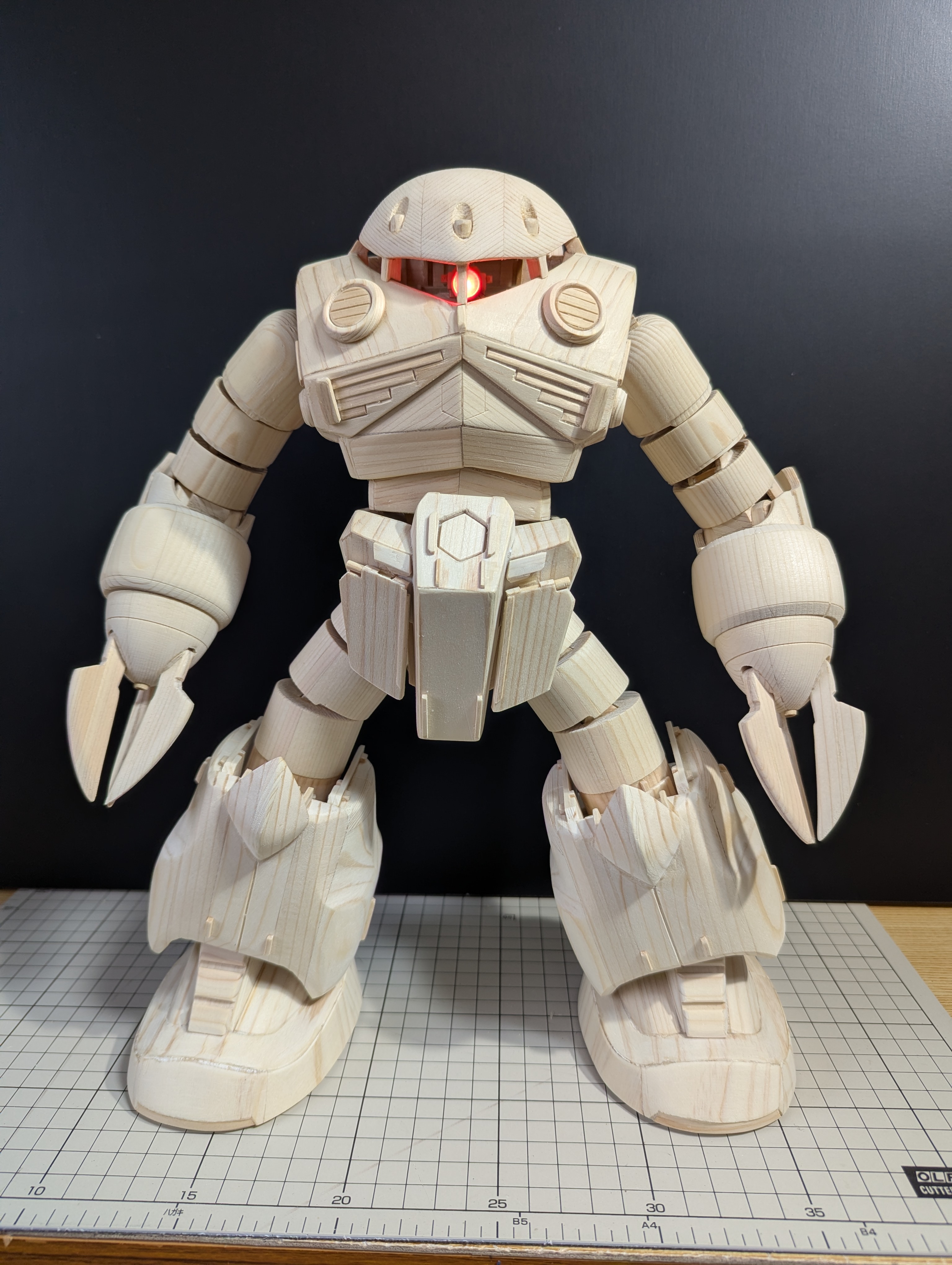 一応ジオング同様にモノアイを光らせられるように加工して、いつものように各部も可動できるようにしてあります。