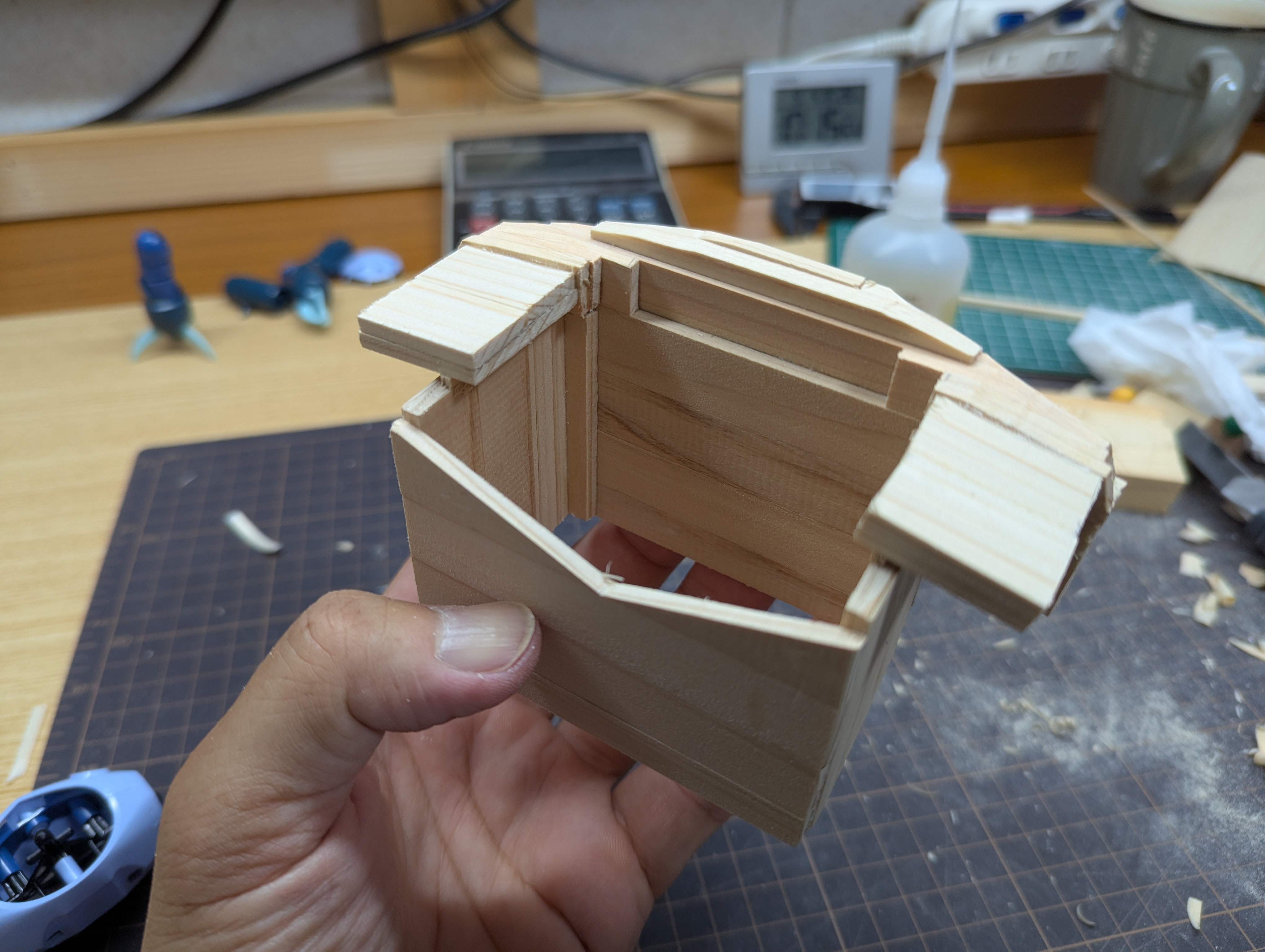 共通改造:胸部の幅詰めと肩関節を固定、肩上のディテールUP、各所のスジボリ。手首は流用パーツおよびポリパテ削り出し。